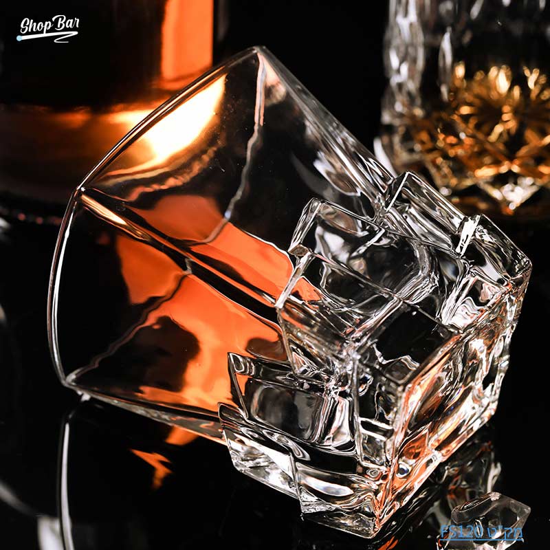 • חיתוך גיאומטרי: דוגמת הקוביות שוברת את האור ומעניקה למשקה ברק מרהיב, וזה מדגיש את צבעם העשיר של הוויסקי והקוקטיילים.
